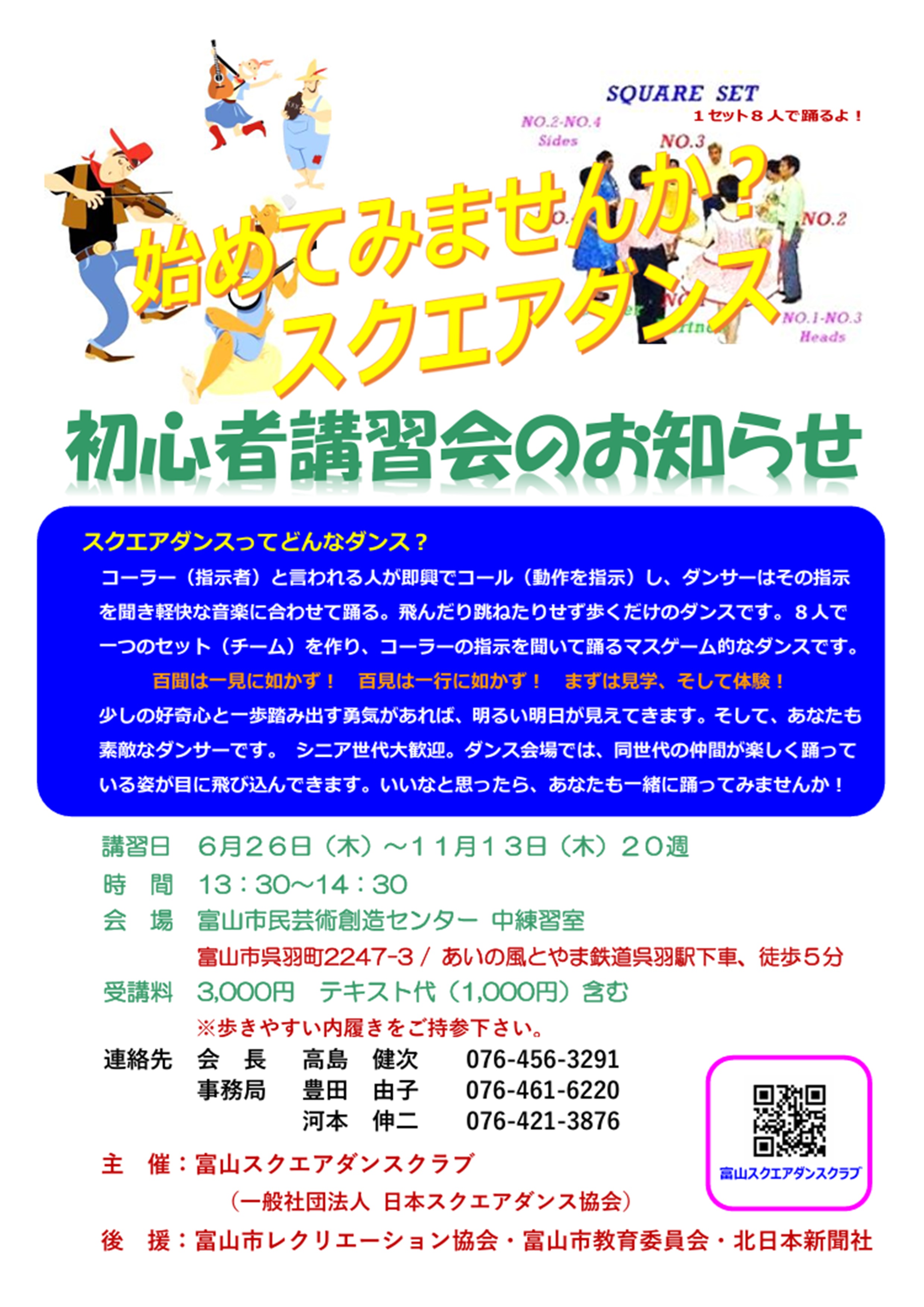 【追記】毎週木曜日が都合悪く講習会に参加できない方を対象に、毎週土曜日にも富山市西田地方公民館2階において10:30~11:30に実施しています。土曜日参加を希望される方は当会事務局までご連絡ください。